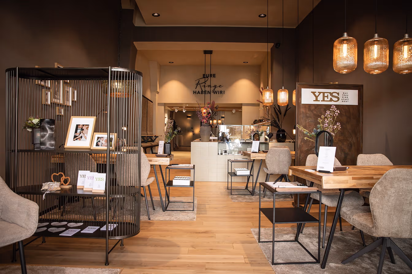 Du stehst vor einer der wichtigsten Entscheidungen deines Lebens. Und genau so behandeln wir sie auch. Bei YES betrittst du kein klassisches Juweliergeschäft – sondern ein Apartment, in dem du ankommst. Wo aus Gedanken ein Plan wird. Und aus einer Idee ihr Ring.