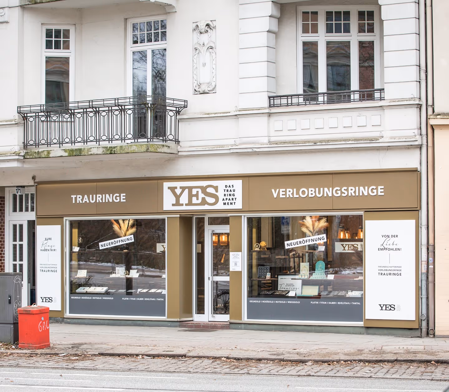 An unseren drei Standorten in Hamburg beraten wir dich in einer Atmosphäre, die sich nicht wie ein Juwelier anfühlt. Sondern wie ein Besuch bei Menschen, die deine Geschichte verstehen und sich mit dir auf diesen einen Moment freuen. Hinter YES steht ein eingespieltes Team aus rund 20 Persönlichkeiten, die Ringe nicht einfach verkaufen, sondern mit Hingabe gestalten. Wir lieben es, wenn Kunden mit einem Lächeln gehen – weil sie nicht nur einen Ring gefunden haben, sondern ein ewiges Symbol ihrer einzigartigen Verbindung.