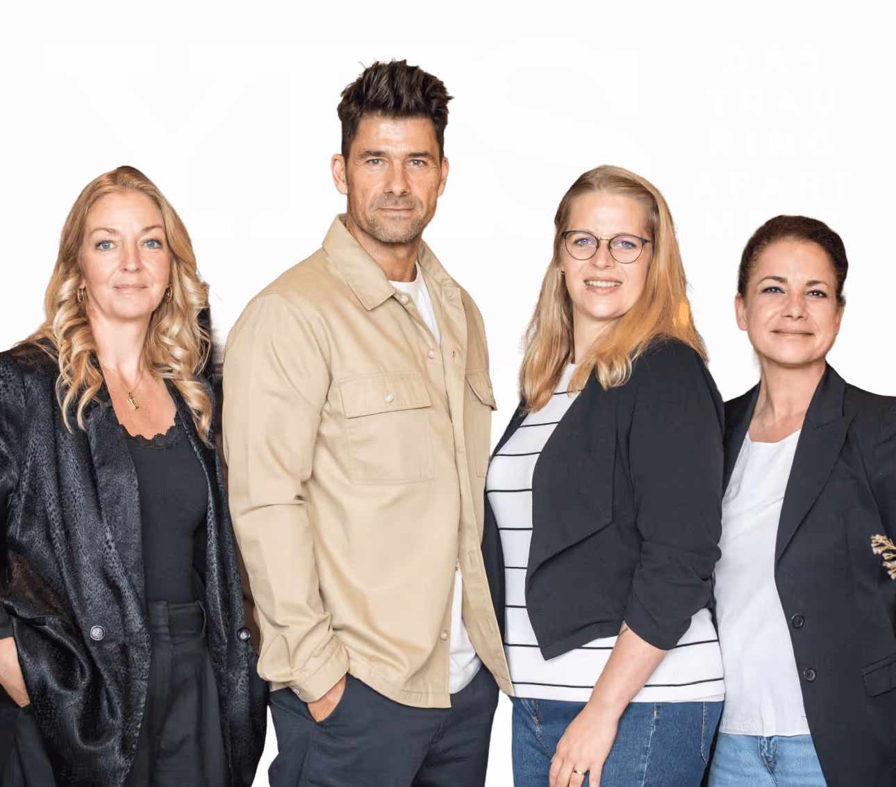 An unseren drei Standorten in Hamburg beraten wir dich in einer Atmosphäre, die sich nicht wie ein Juwelier anfühlt. Sondern wie ein Besuch bei Menschen, die deine Geschichte verstehen und sich mit dir auf diesen einen Moment freuen. Hinter YES steht ein eingespieltes Team aus rund 20 Persönlichkeiten, die Ringe nicht einfach verkaufen, sondern mit Hingabe gestalten. Wir lieben es, wenn Kunden mit einem Lächeln gehen – weil sie nicht nur einen Ring gefunden haben, sondern ein ewiges Symbol ihrer einzigartigen Verbindung.